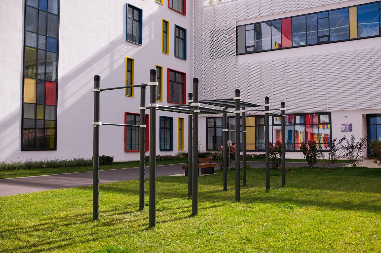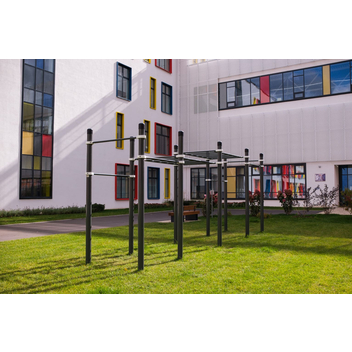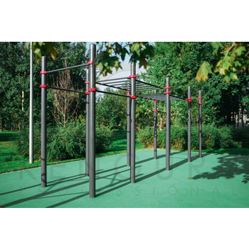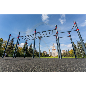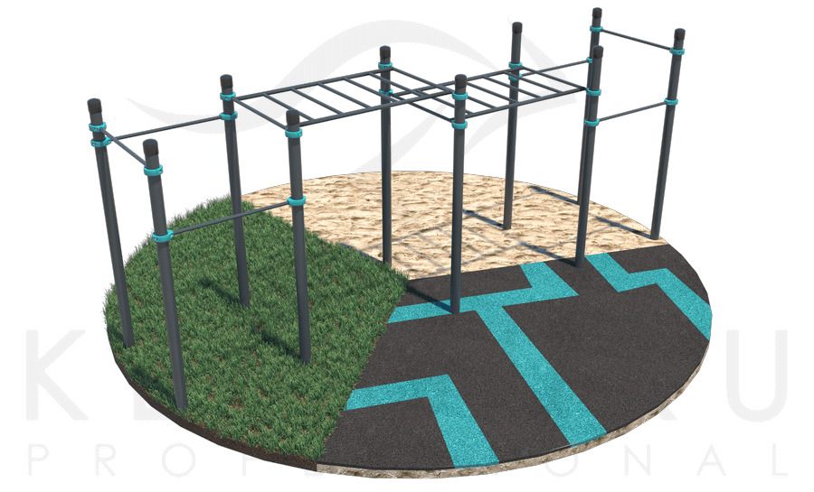 Классический воркаут-комплекс Диксон выбирают для спортивных площадок на территории парков и других общественных пространств. Этот комплекс обычно ставят в центр большой площадки, а вокруг него располагают другие комплексы. Иногда воркаут комплекс устанавливают на небольших площадках — дополните его брусьями К-018, и вы получите площадку со всеми необходимыми для уличной тренировки элементами.