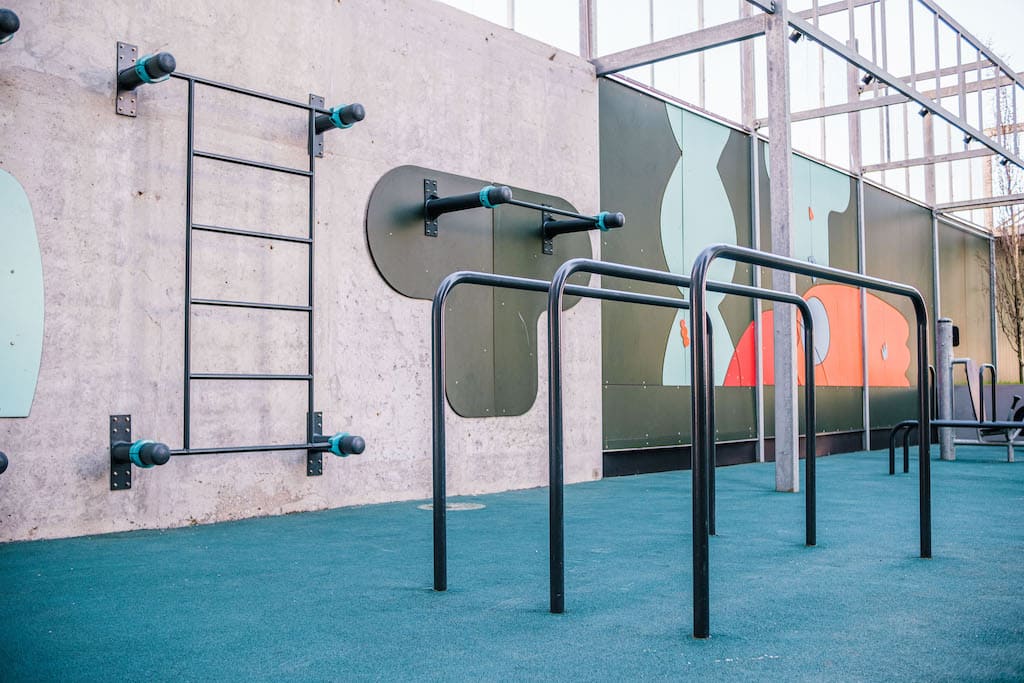 Возможны занятия зимой — благодаря специальной технологии окрашивания оборудование не леденеет в мороз и не позволяет спортсмену соскальзывать при выполнении упражнений. Кроме того, перекладины снаряда увеличенного диаметра не врезаются в ладони.