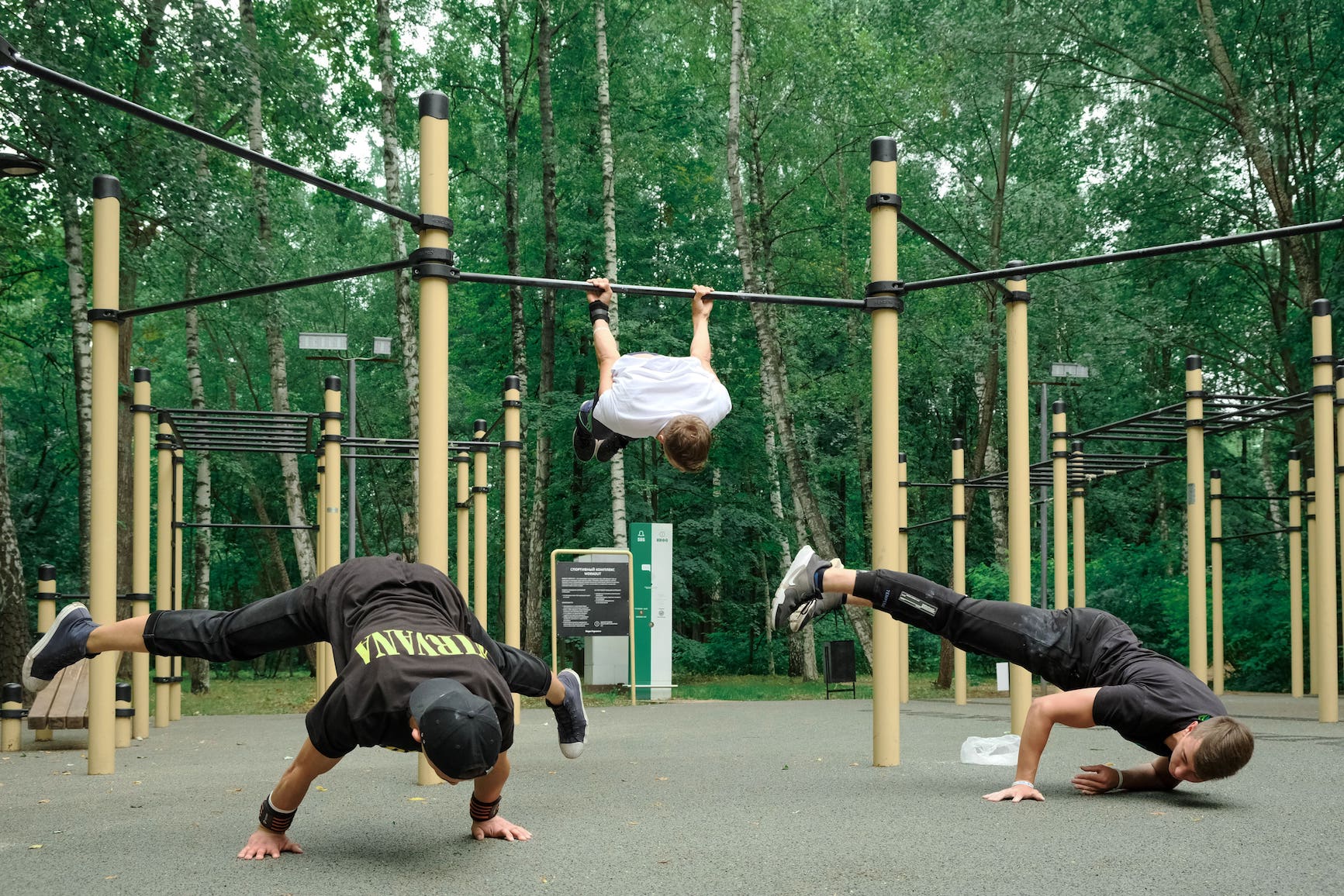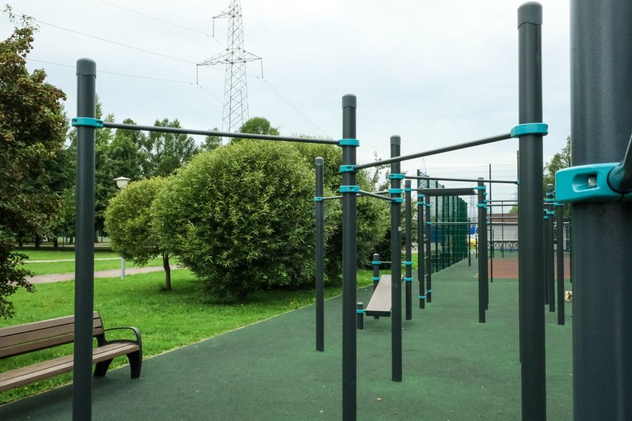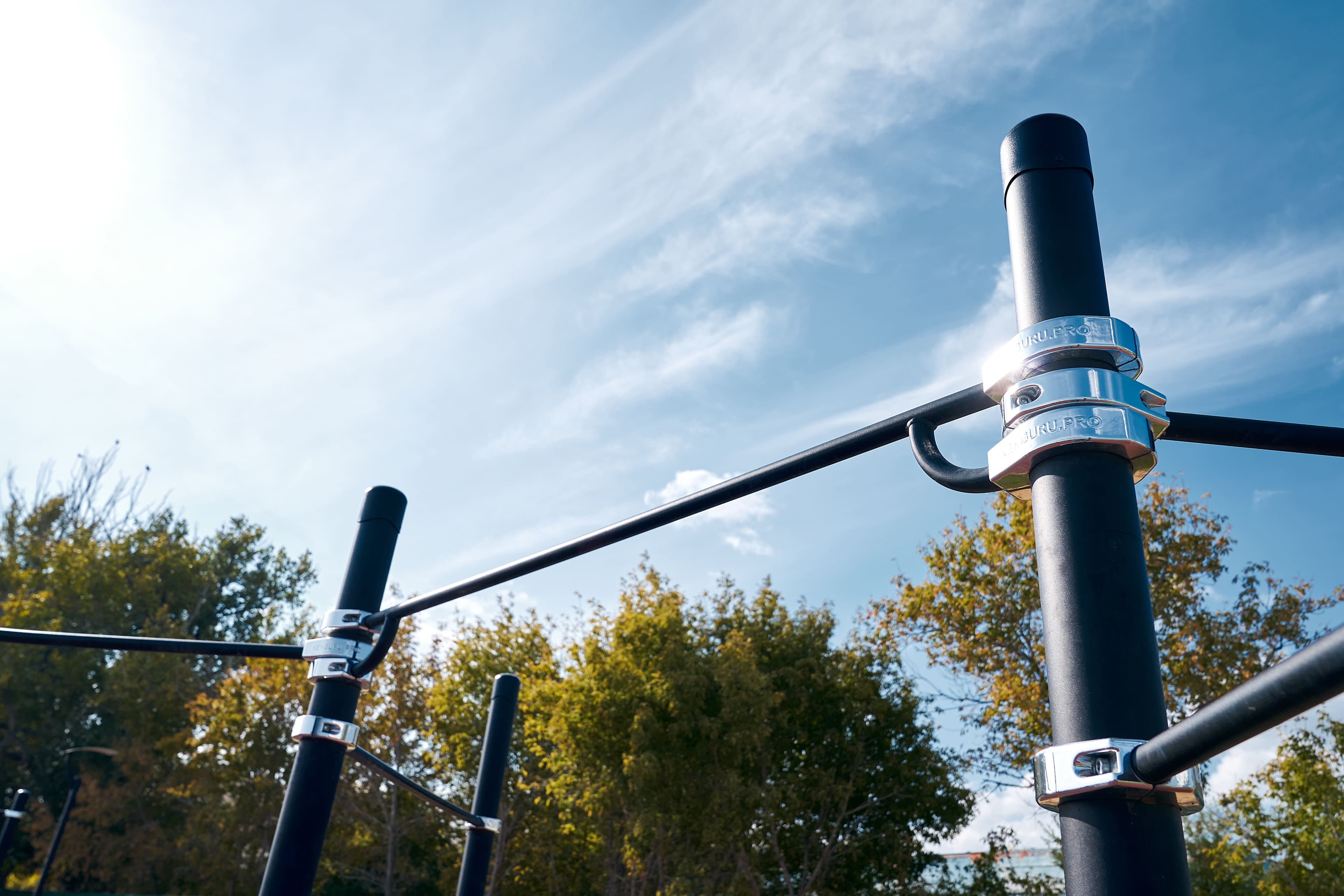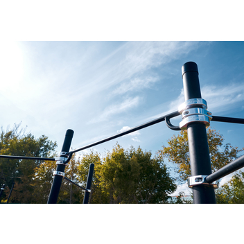 Перекладины выдерживают 9-кратные нагрузки благодаря соединению «хомут», не подвержены обледенению, руки на них не скользят. Диаметр опорных столбов – 108 мм. Поэтому на турниках можно заниматься не только во дворе, школе, спортклубе, но и проводить соревнования. Это надежное оборудование, которое получило европейский сертификат TUV и рекомендовано Международной федерацией воркаута.