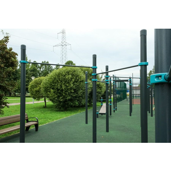 Воркаут-комплекс из 5 турников рассчитан на 5 занимающихся одновременно. На нем можно выполнять все основные силовые упражнения: подтягивания, пресс, подъем ног. Этот комплекс идеально подходит для фристайла, сложных тренировок с комбинациями из перелетов и перепрыгиваний.
