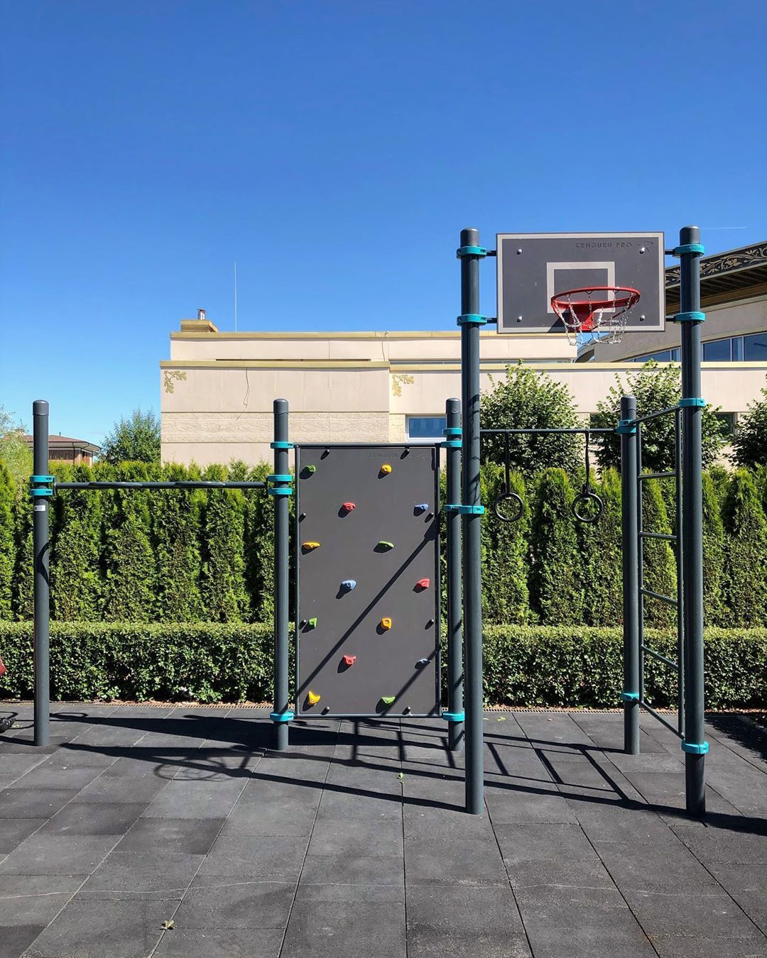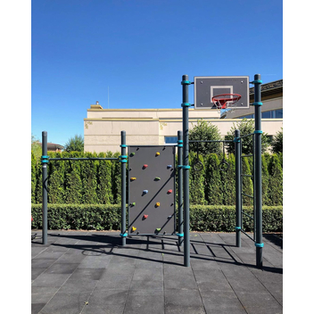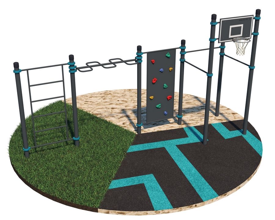 3 турника, баскетбольный щит, рукоход-змеевик, скалодром, шведская стенка