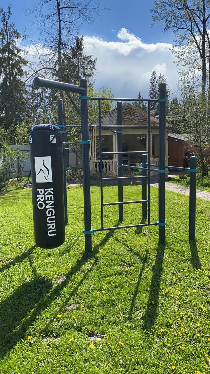 На шведской стенке будете делать растяжку. Брусья диаметром 42 мм не режут руку при отжиманиях. Боксерский мешок предназначен для использования на улице. Вес боксерского мешка составляет - 75 кг.