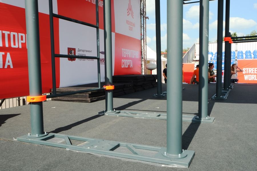 Установленная на основаниях воркаут площадка получается мобильной — в любое время её можно быстро разобрать, перевезти в другое место и установить там или убрать на склад до нового мероприятия. Именно поэтому линейка оборудования для спортзалов востребована у организаторов спортивных праздников и мероприятий.