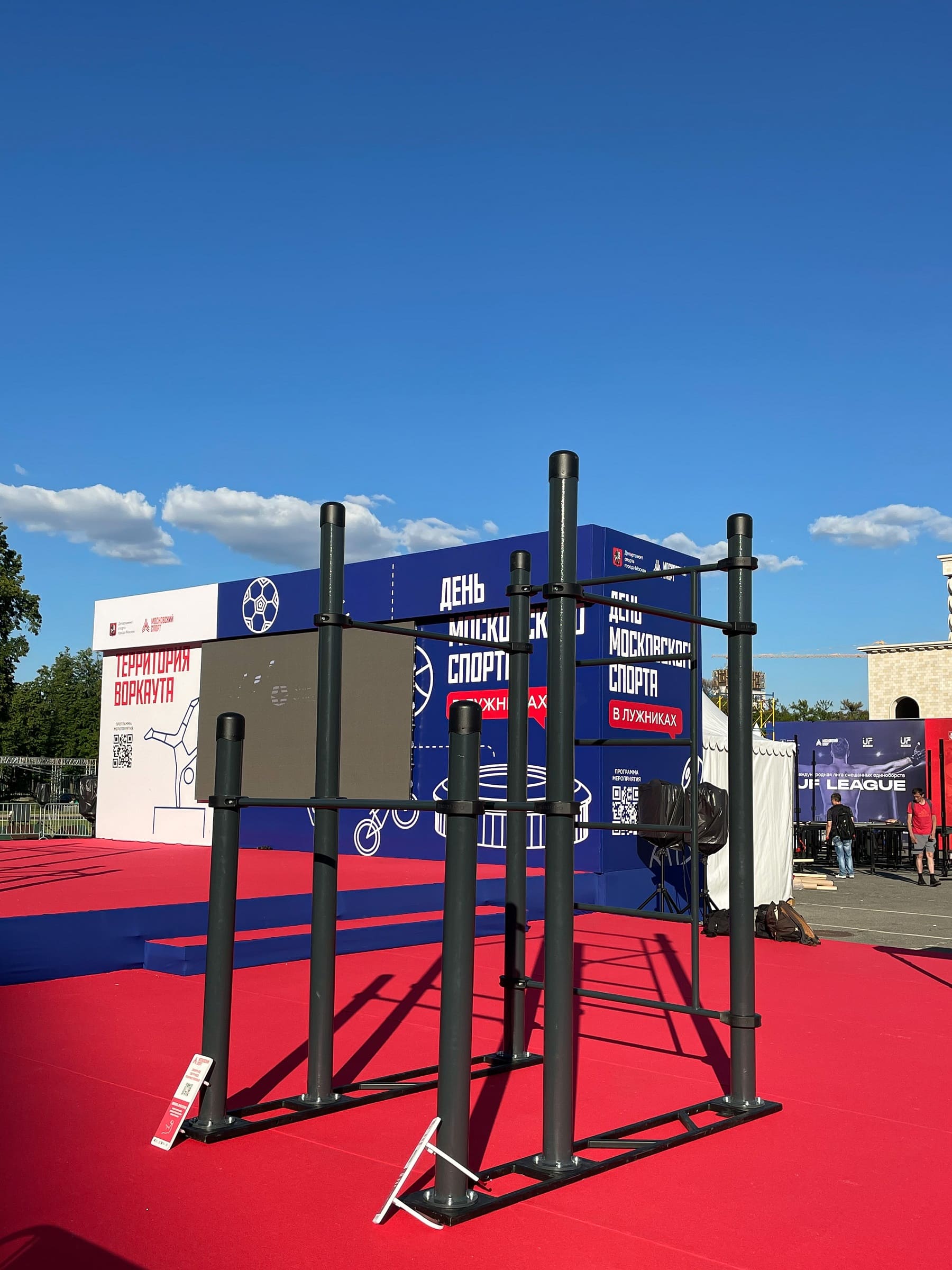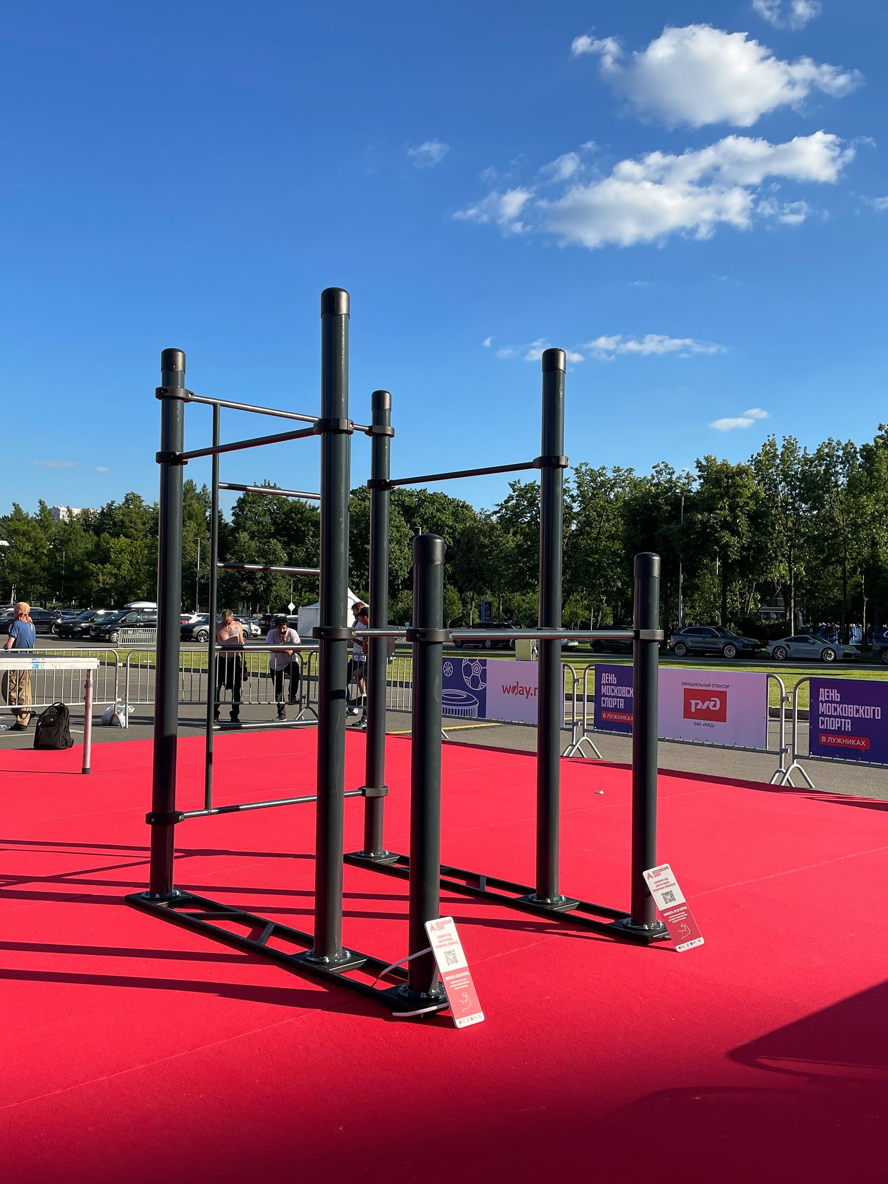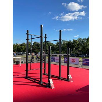 Установленная на основаниях воркаут площадка получается мобильной — в любое время её можно быстро разобрать, перевезти в другое место и установить там или убрать на склад до нового мероприятия.