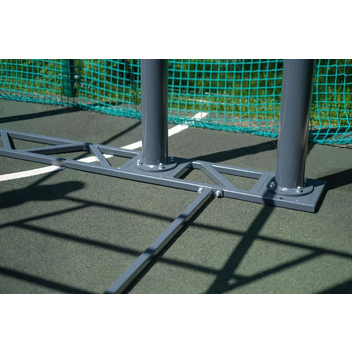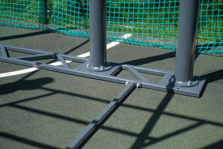 Диаметр опорных столбов 108 мм, толщина стенки 3 мм. Сверху на каждый опорный столб устанавливается безопасная заглушка из АБС пластика. Для крепления к металлическим основаниям снизу каждого опорного столба приварен металлический фланец диаметром 180 мм и толщиной 10 мм.