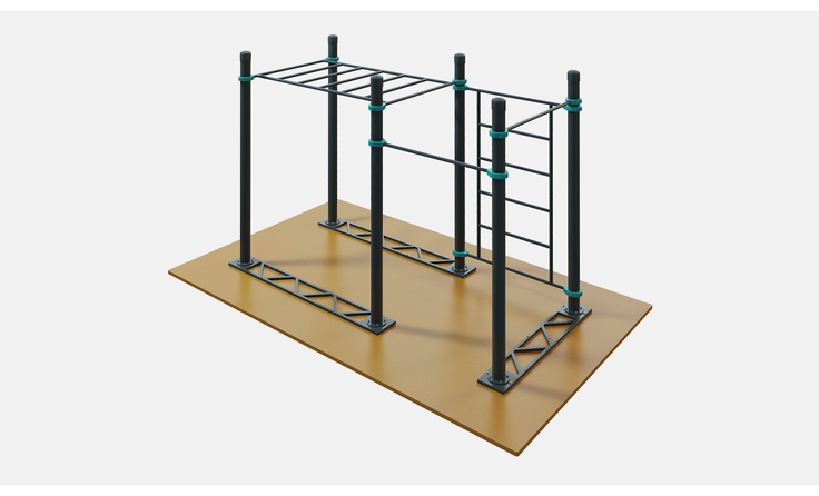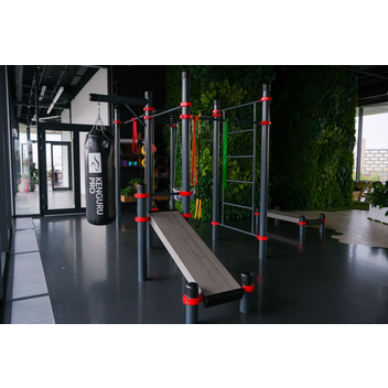 Воркаут комплекс D-004 подходит для установки в фитнес клубах, спортзалах и спортивных школах: там, где нельзя бетонировать опорные столбы. Часто используется для проведения соревнований по воркауту.