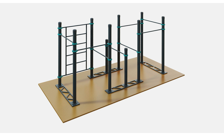 Воркаут комплекс D-005 подходит для установки в фитнес клубах, спортзалах и спортивных школах: там, где нельзя бетонировать опорные столбы. Часто используется для проведения соревнований по воркауту.