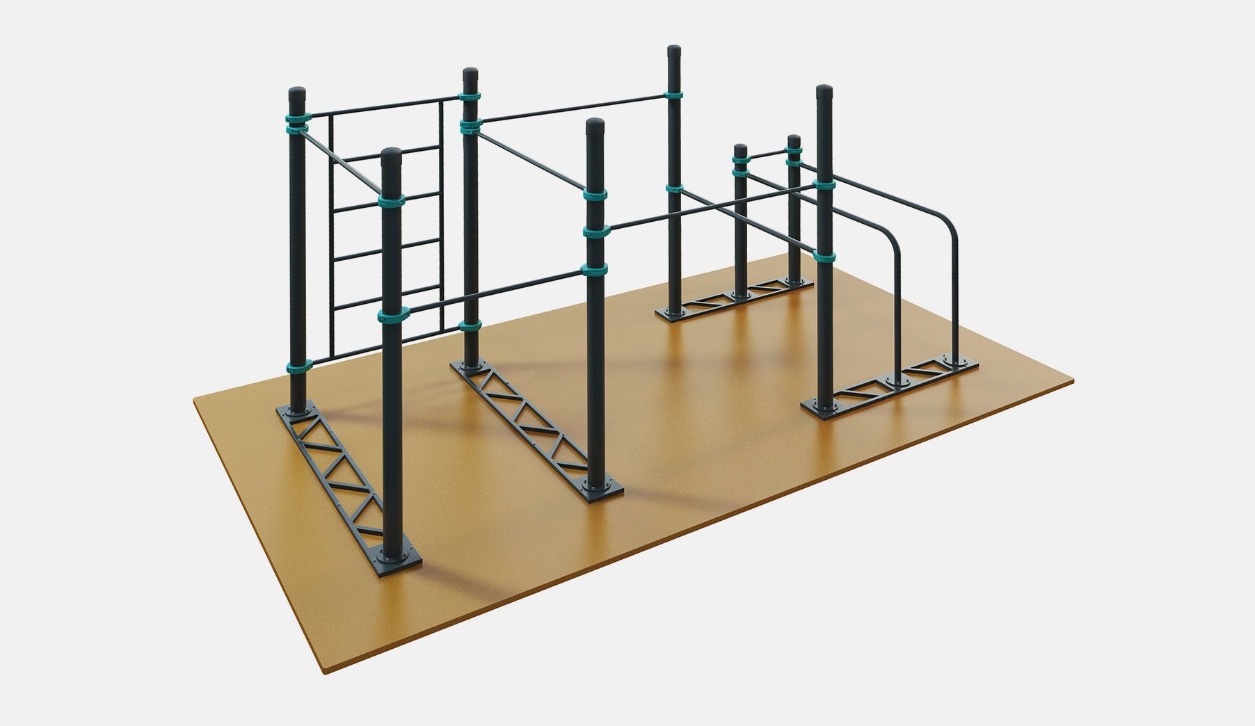 Мобильный комплекс для воркаута D-007 устанавливается в помещениях: фитнес клубах, спортзалах спортивных школах и других местах, где нельзя бетонировать опорные столбы.