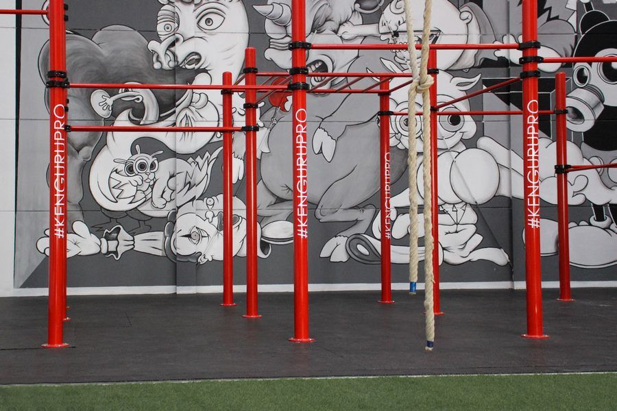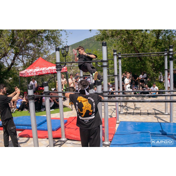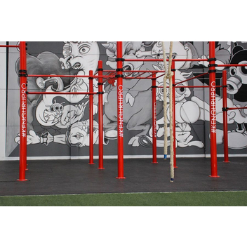 Мобильный воркаут комплекс D-010 устанавливается в помещениях: фитнес клубах, спортзалах спортивных школах и других местах, где нельзя бетонировать опорные столбы. Данный комплекс один из самых востребованных для проведения соревнований.