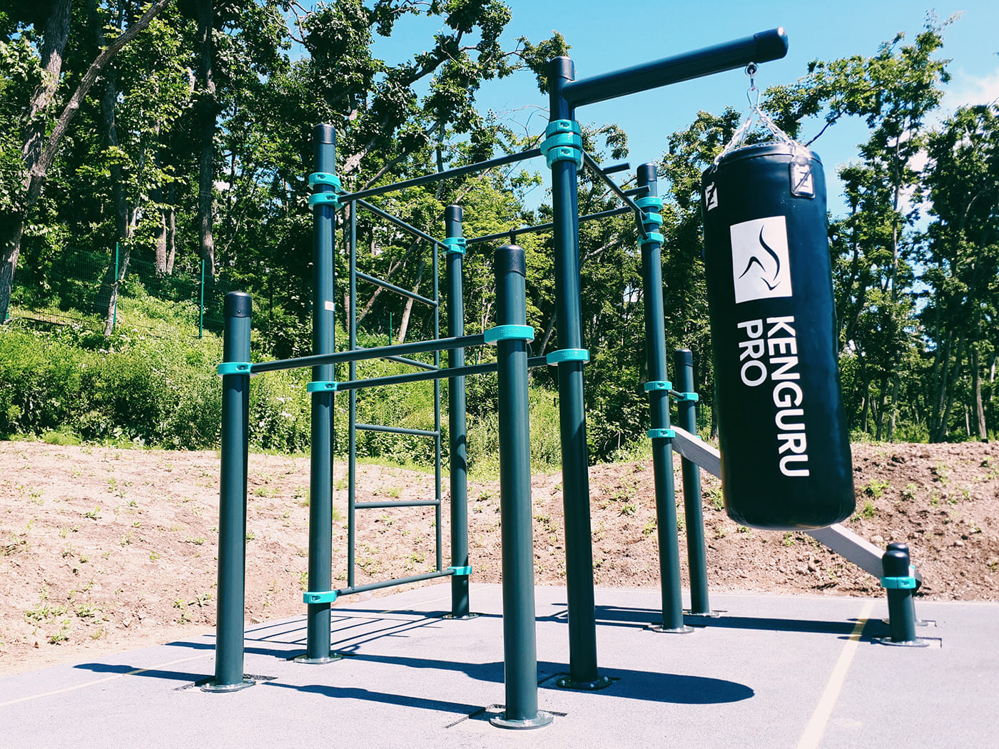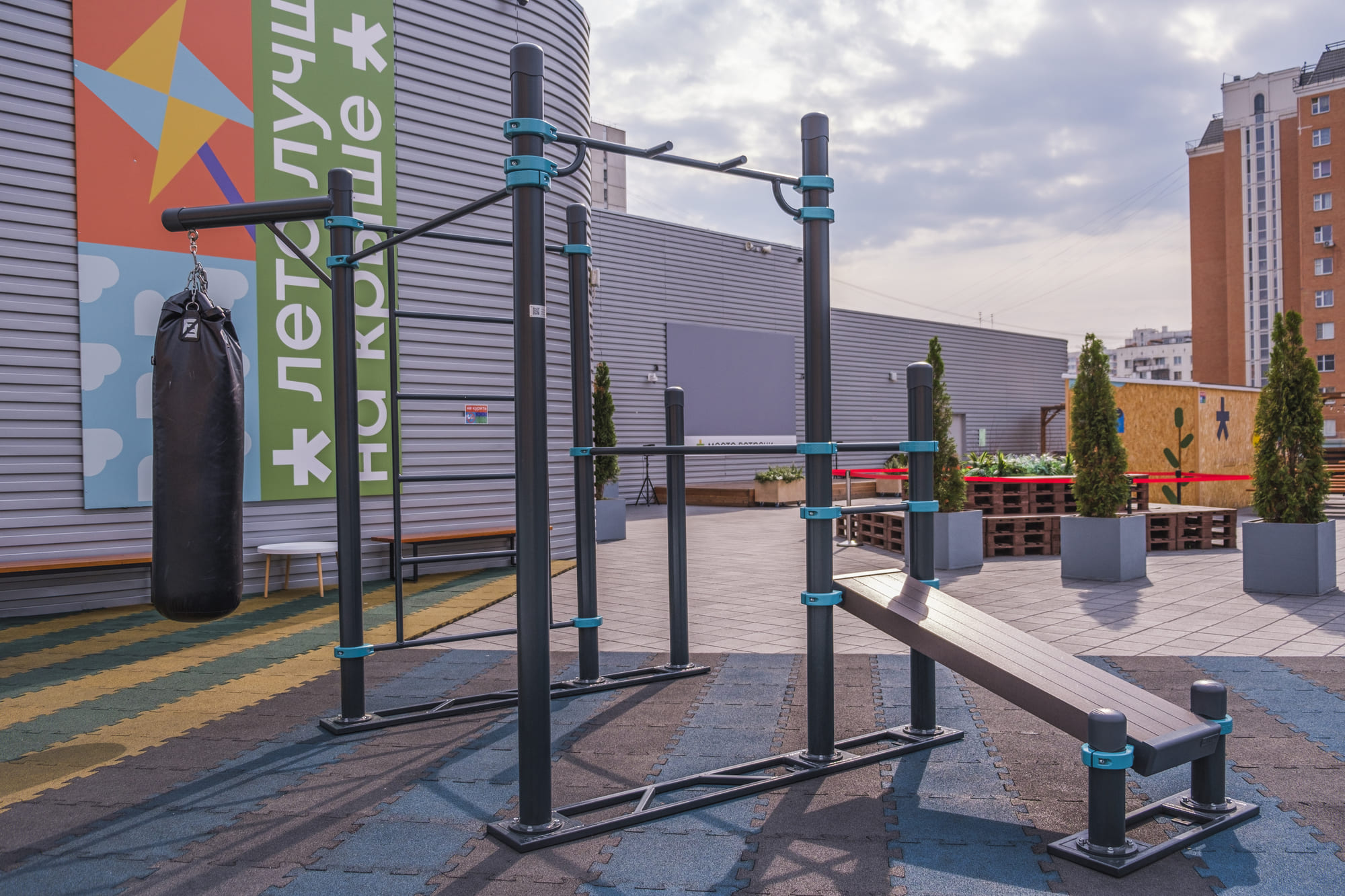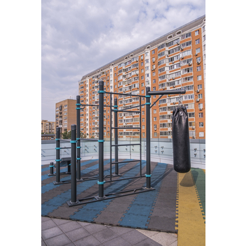 Спортивный комплекс для тех, кто всерьез решил заняться воркаутом. На широком турнике можно не только выполнять классические упражнения, но и создавать собственные комбинации. Боксерский мешок подвешен в стороне, чтобы вы могли отрабатывать выход из удара и свободно двигаться вокруг снаряда, не мешая другим участникам. Повышайте выносливость тела и закаляйте характер, делая упражнения на брусьях. Не забудьте хорошо растянуть мышцы и расслабиться после тренировки на шведской стенке.