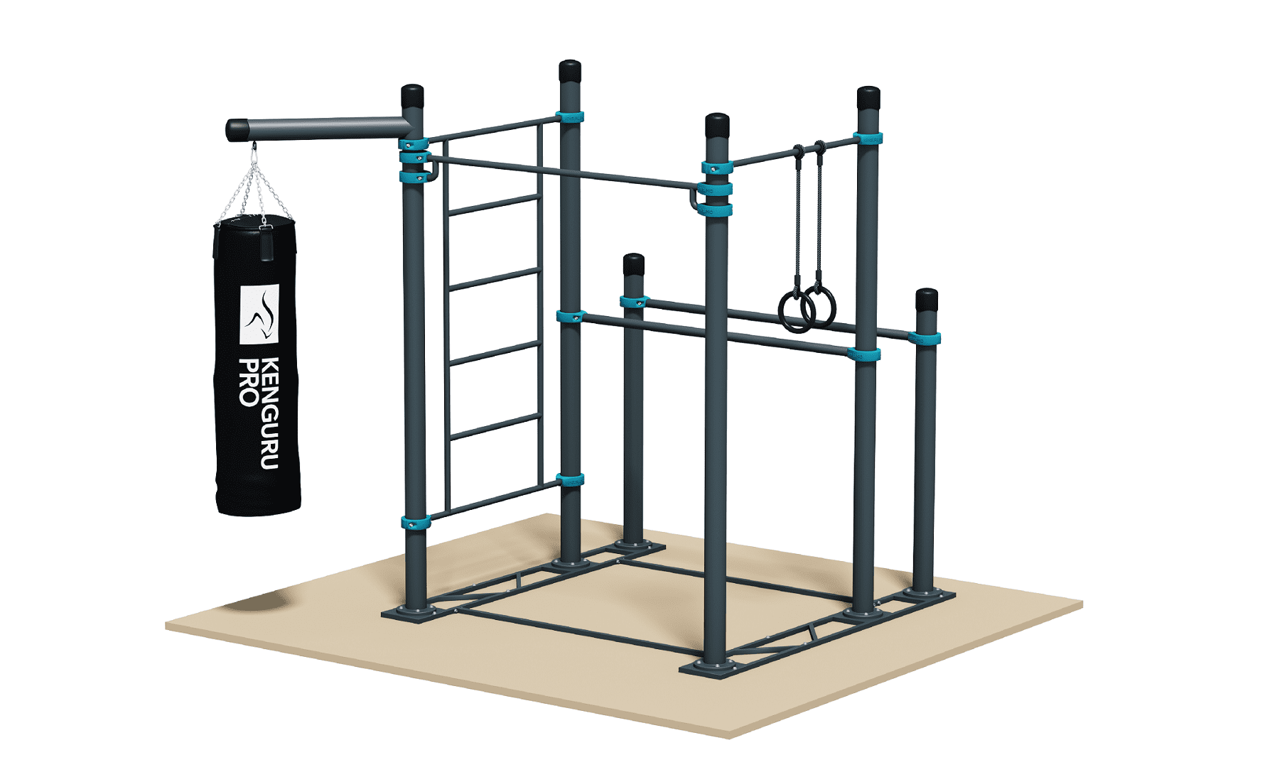 Комплекс подходит для установки в домашнем тренажерном зале, во дворе загородного дома или в фитнес-центре. Он устанавливается на пластинах: не придется бетонировать столбы. Наши монтажники быстро поставят оборудование и уберут строительный мусор. Комплекс мобильный: его можно разобрать и переставить в другое место.