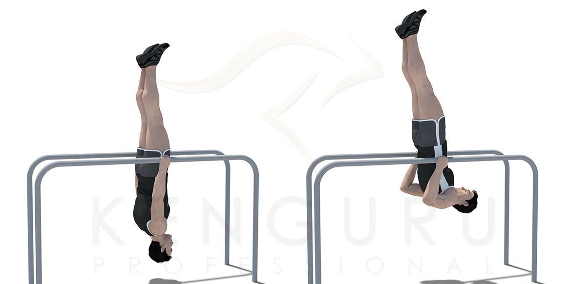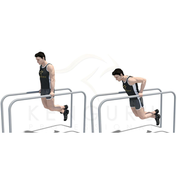 отжимания на брусьях с подъёмом ног и разведением их над брусьями,