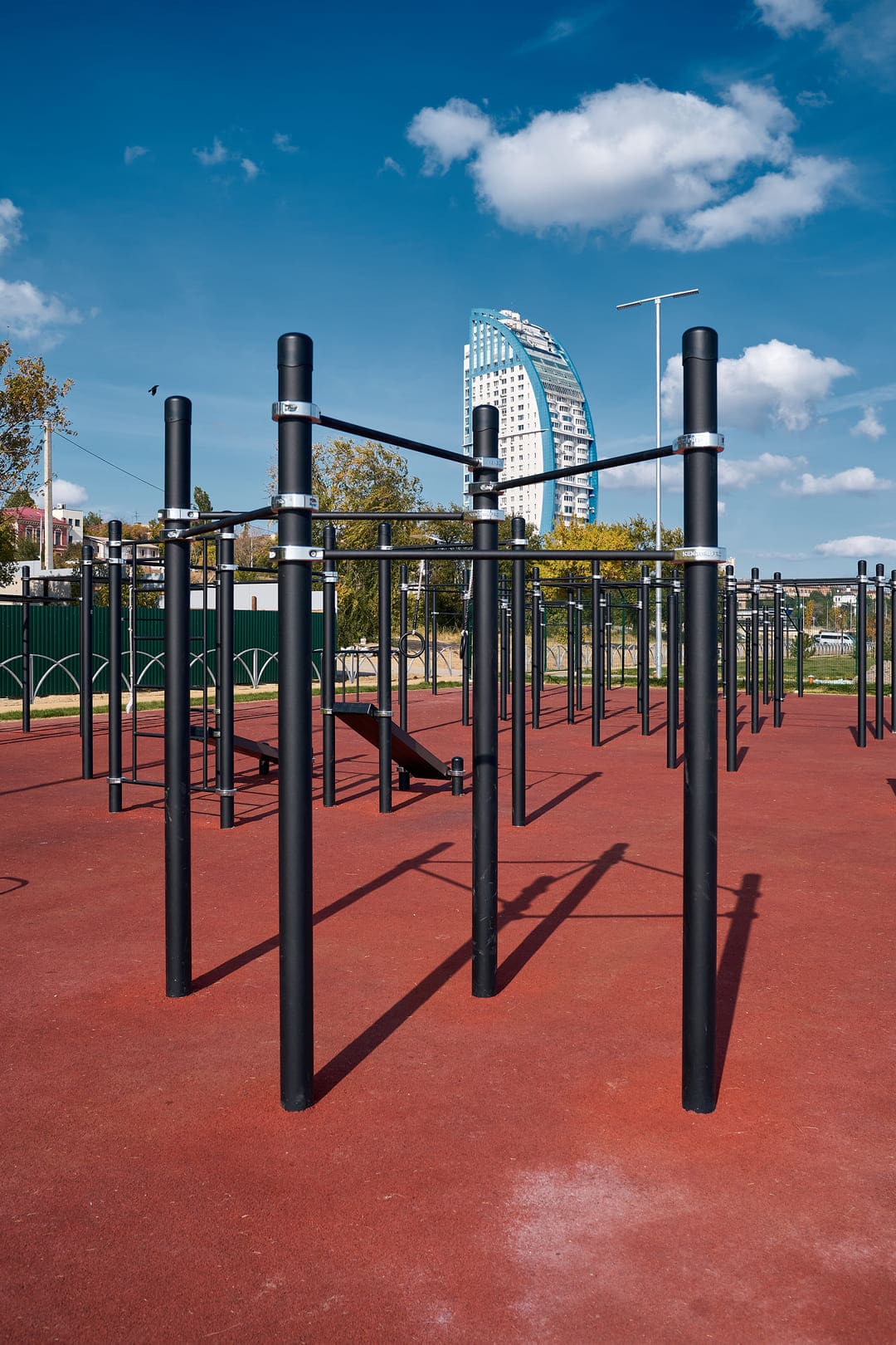 Перекладины не подвержены обледенению, с них не соскальзывают руки даже зимой и дождливой осенью. Благодаря соединению «хомут» они выдержат 9-кратные нагрузки, гарантируя полную безопасность для спортсменов.