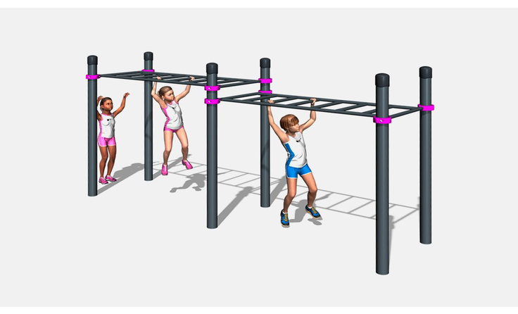 Двухуровневый рукоход состоит из двух секций. Дети любят лазилки и не любят скучные тренировки. Лазая по рукоходу дети в игровой форме укрепляют мышцы и готовят их для более сложных упражнений — подтягиваний и выходов силой.