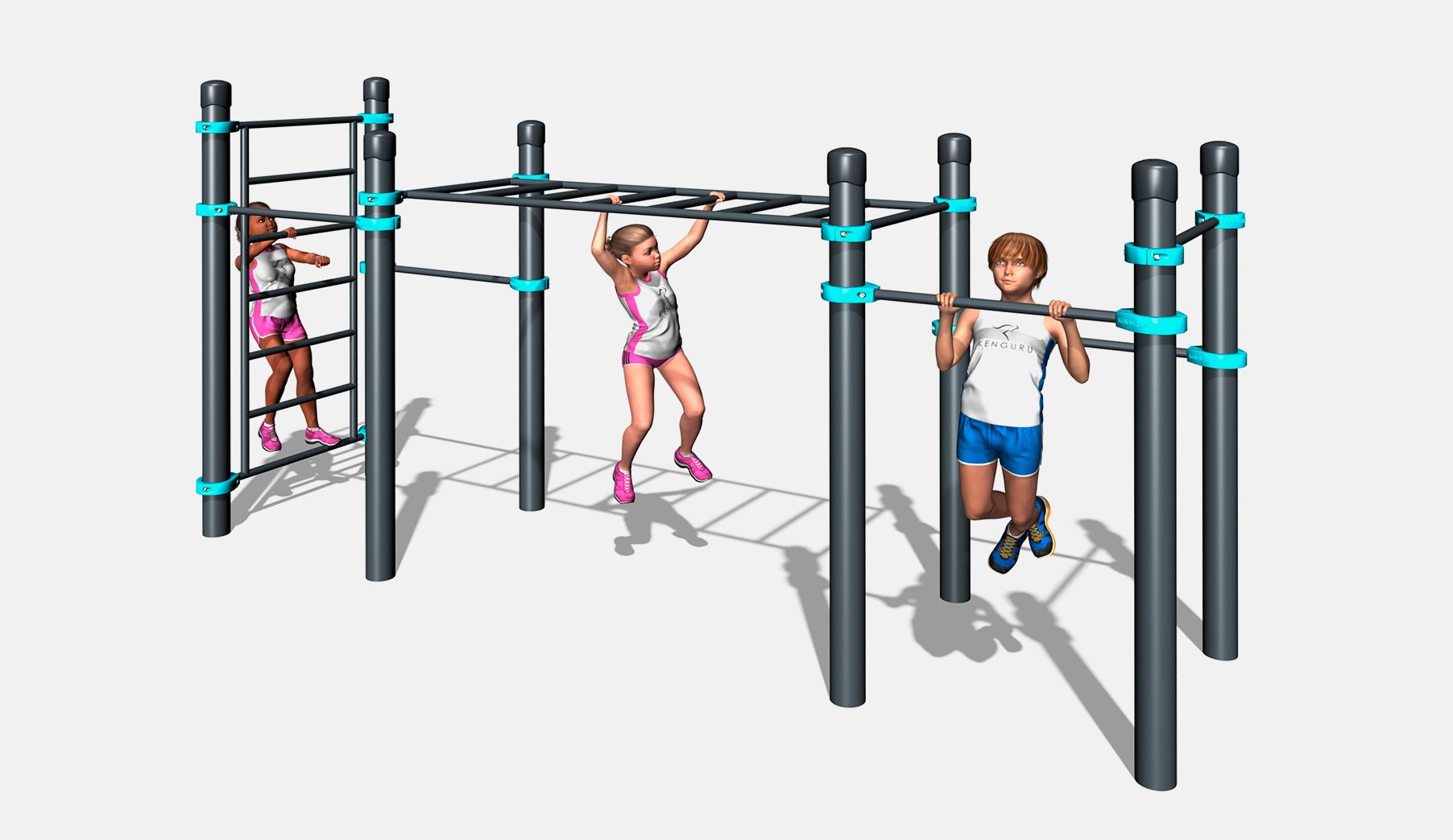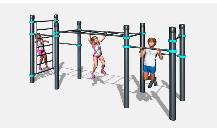 Детский спортивный комплекс KIDS-027 Хатанга устанавливают на общественных территориях: во дворах, парках, детских садах и школах. Можно установить на частной территории. Подходит для тренировок детей от 3 до 8 лет. Четыре турника устанавливаются на разной высоте, чтобы было удобно ребёнку любого роста.