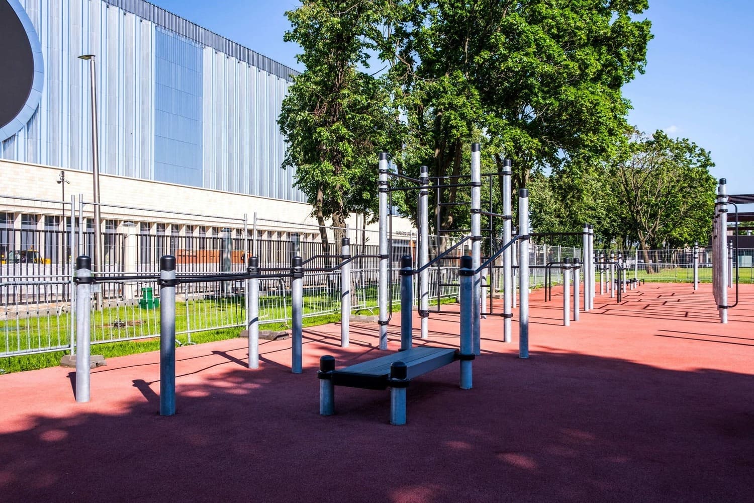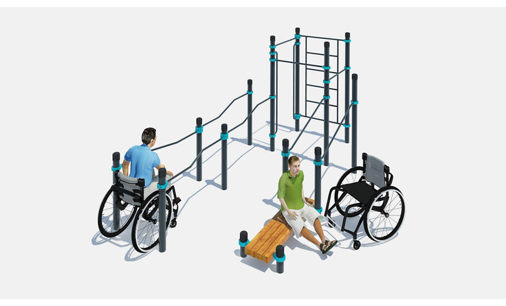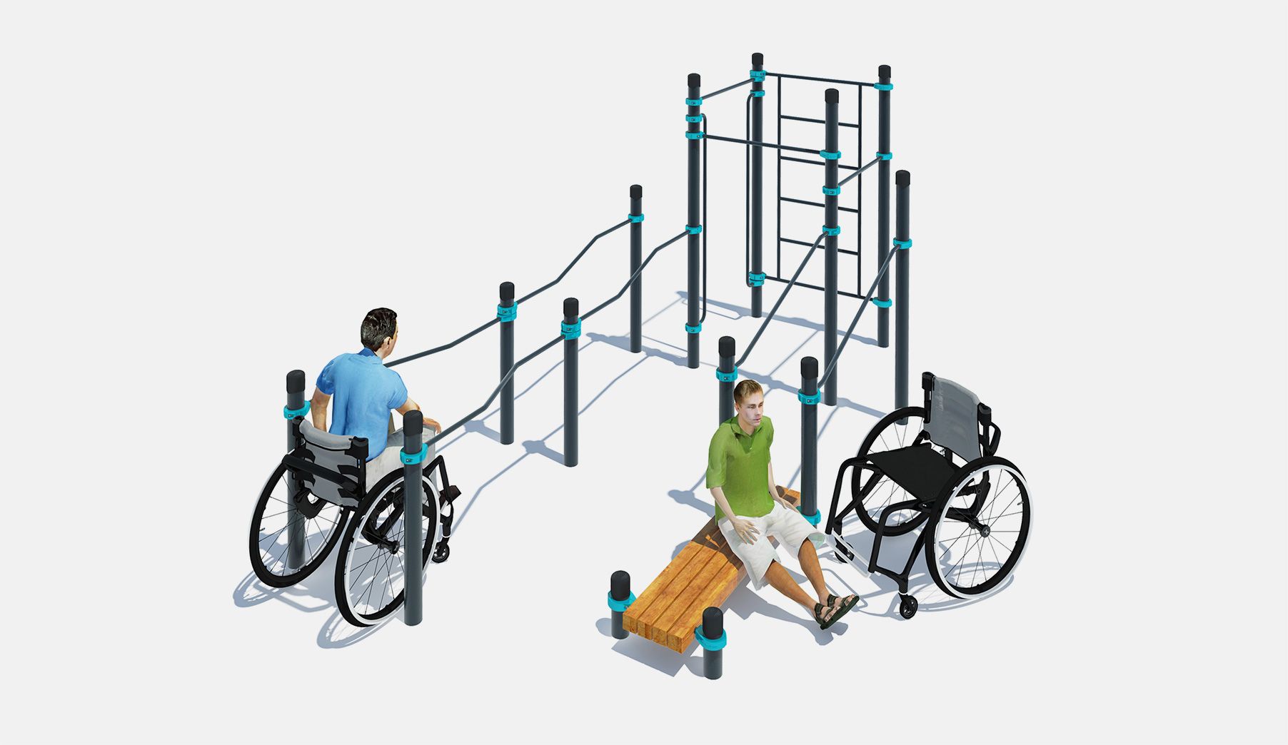 Спортивный комплекс для параворкаута рассчитан на 8–9 занимающихся одновременно и подходит для полного курса реабилитации: