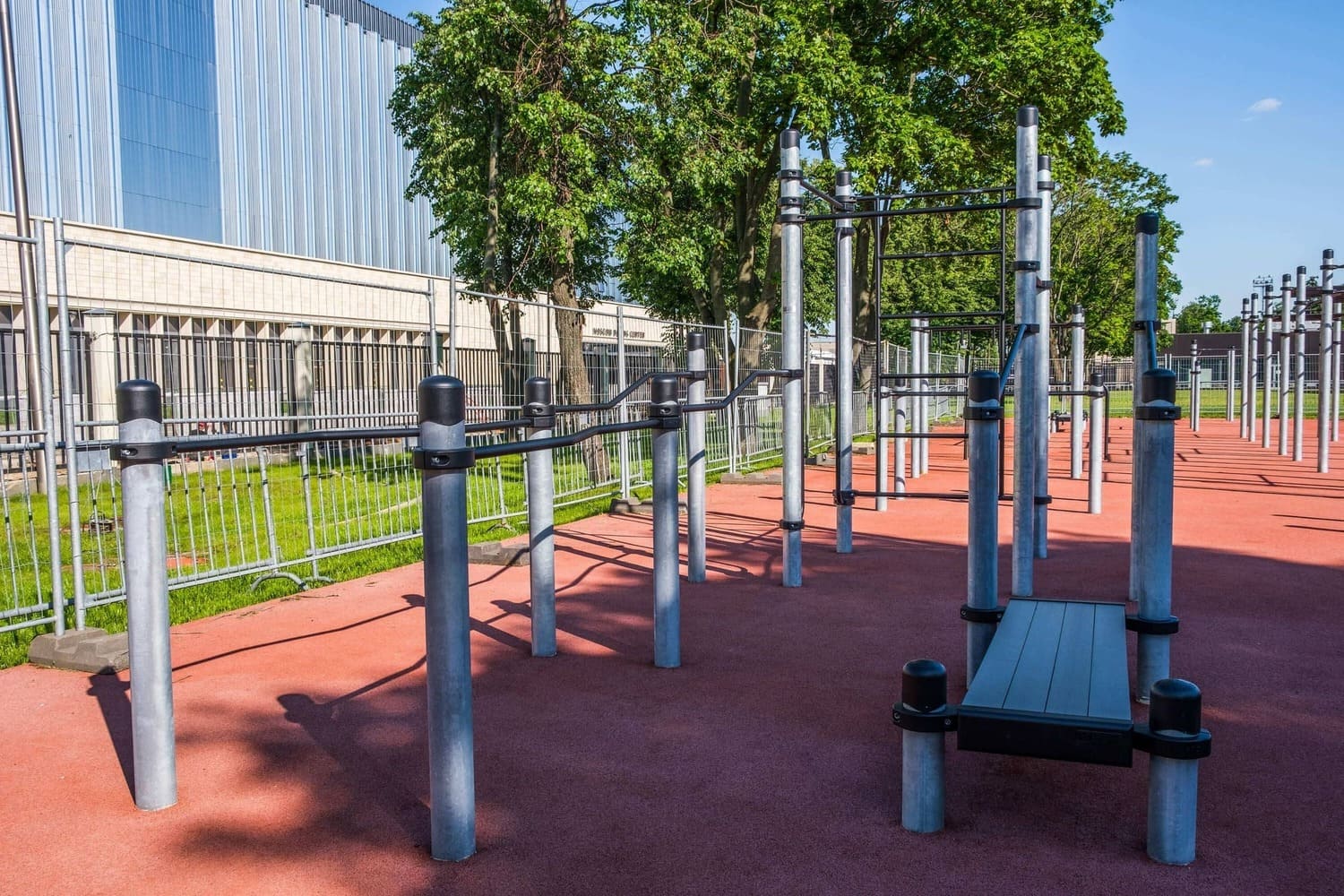 На разноуровневых, изогнутых и поднимающихся брусьях можно заново учиться ходить, отжиматься и делать подъем ног.