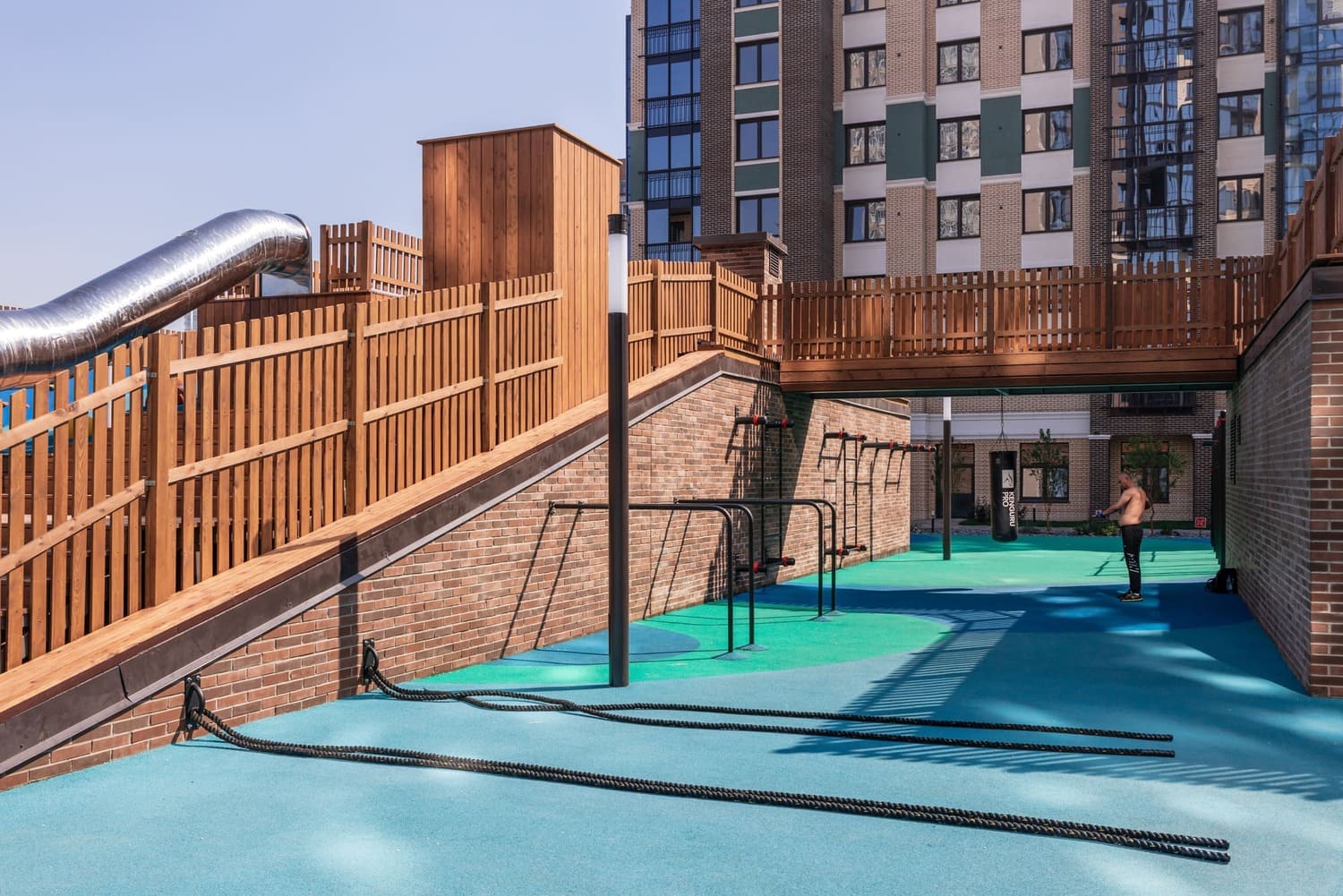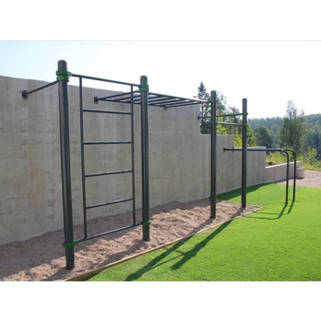 Брусья W-002 устанавливают там, где мало места и нет возможности бетонировать. Нижняя часть брусьев крепится к полу, верхняя — к стене. Устанавливается в жилых комплексах, спортзалах, офисах.