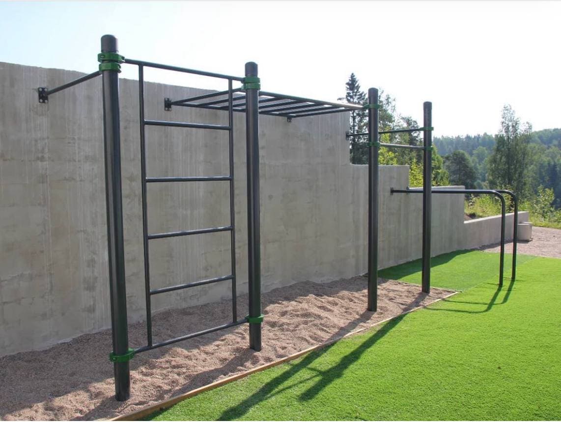 Это полноценные брусья, на них можно выполнять все те упражнения, что и на стандартных бетонируемых брусьях — отжиматься, делать, стойку, удерживать уголок.