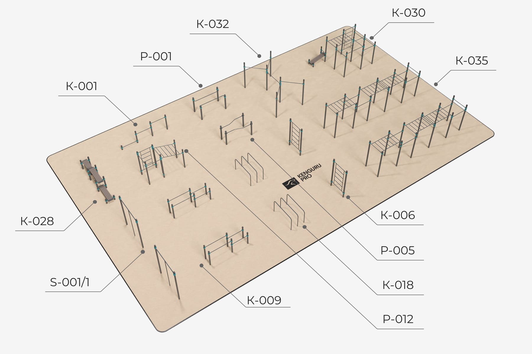 Воркаут-площадка № 10-540 м2 (30 х 18 м)