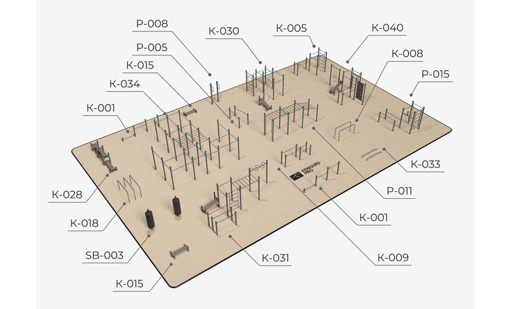 Воркаут-площадка № 11-640 м2 (32 х 20 м)