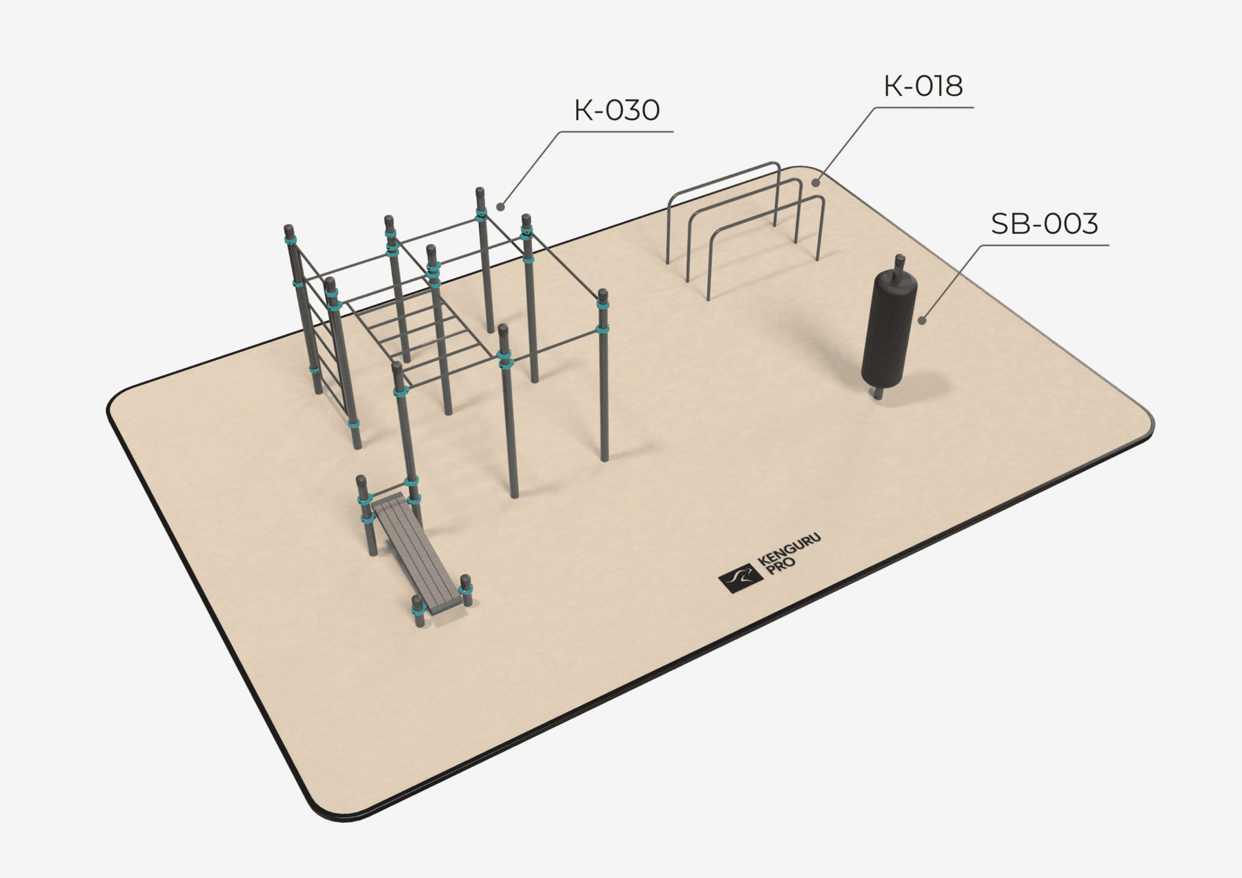 Воркаут площадка № 3 - 96 м2 (12 х 8 м)