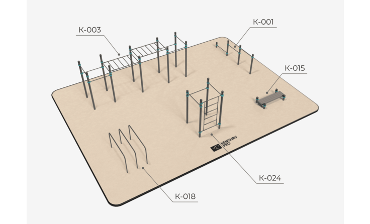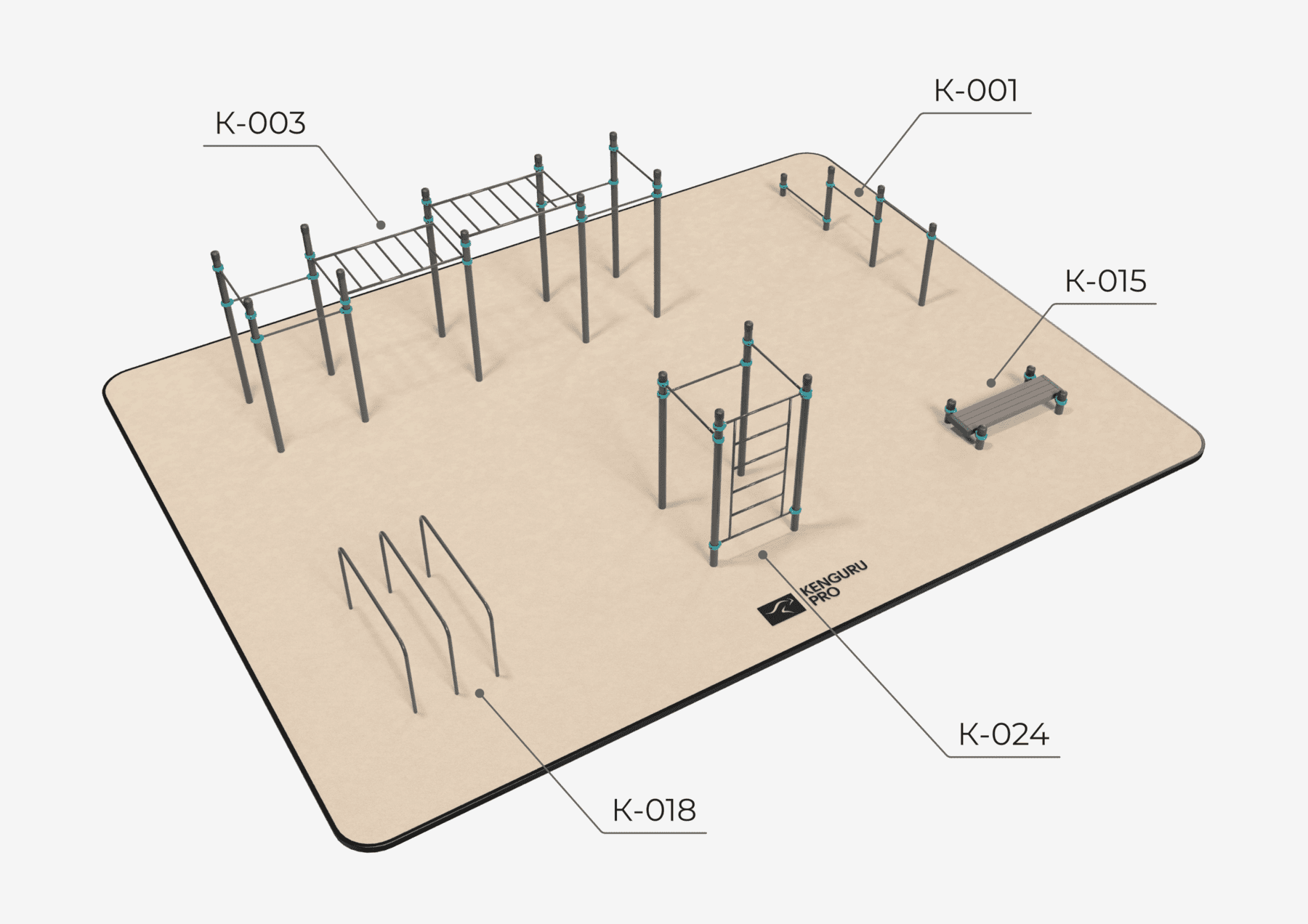Воркаут площадка № 4 - 135 м2 (13,5 х 10 м)