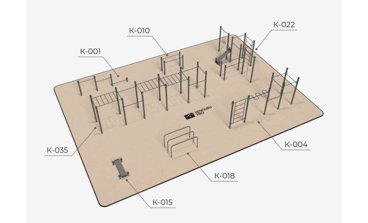 Воркаут площадка № 6 - 234 м2 (18 х 13 м)