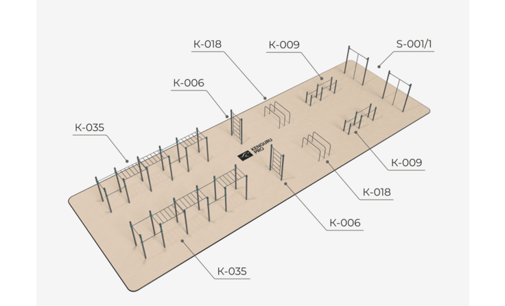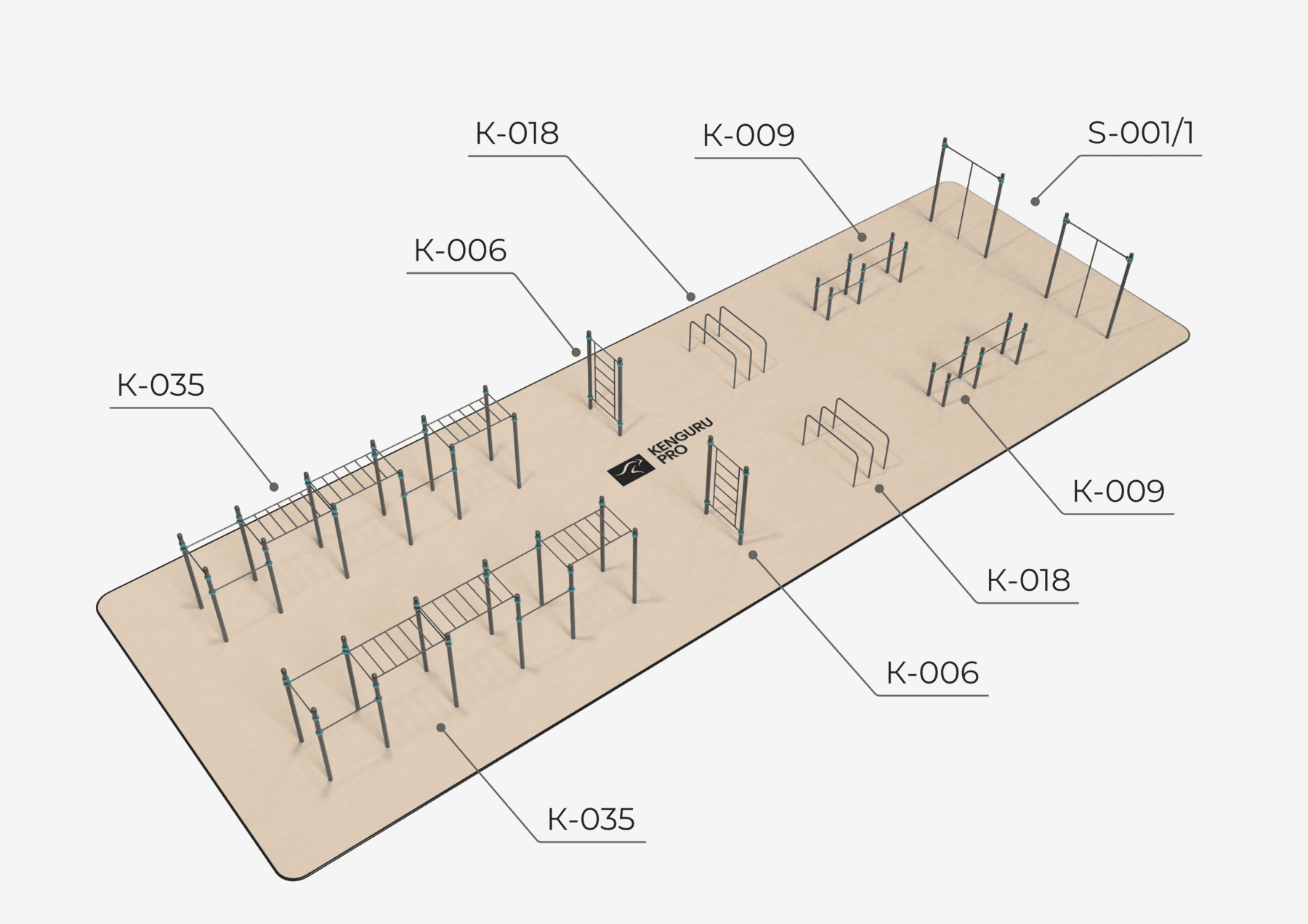 Воркаут площадка № 7 - 300 м2 (30 х 10 м)