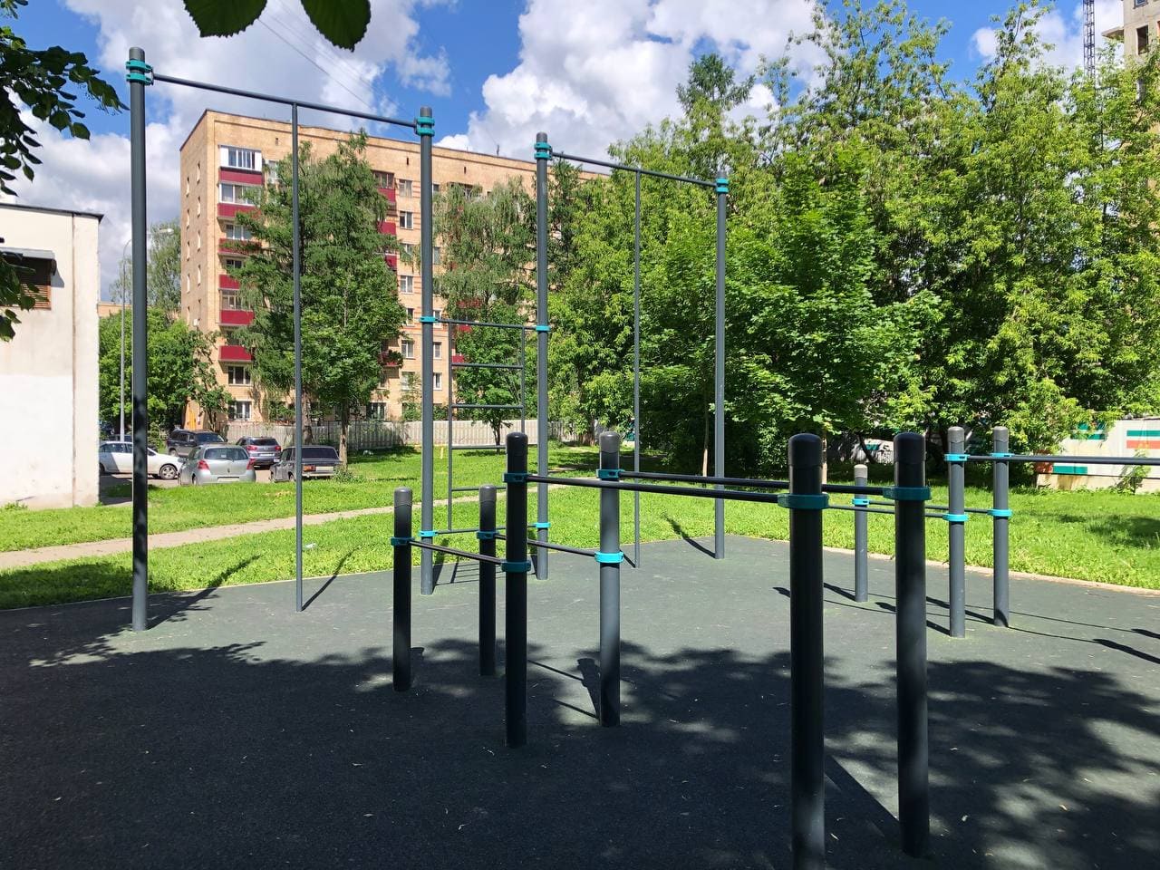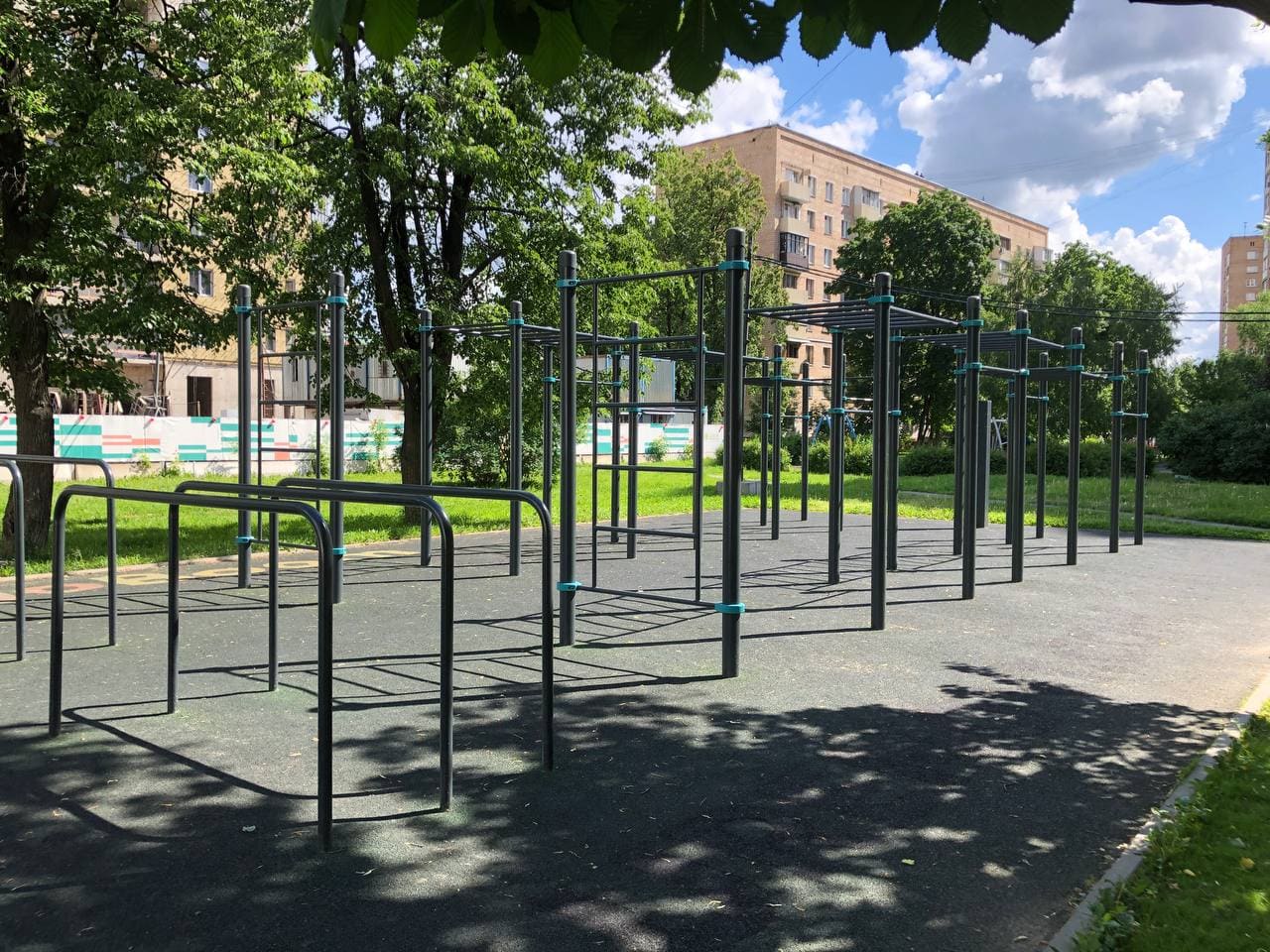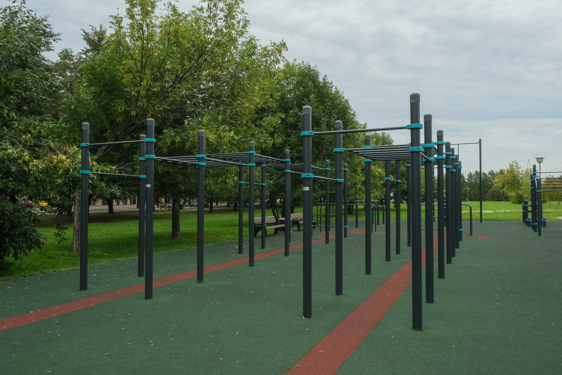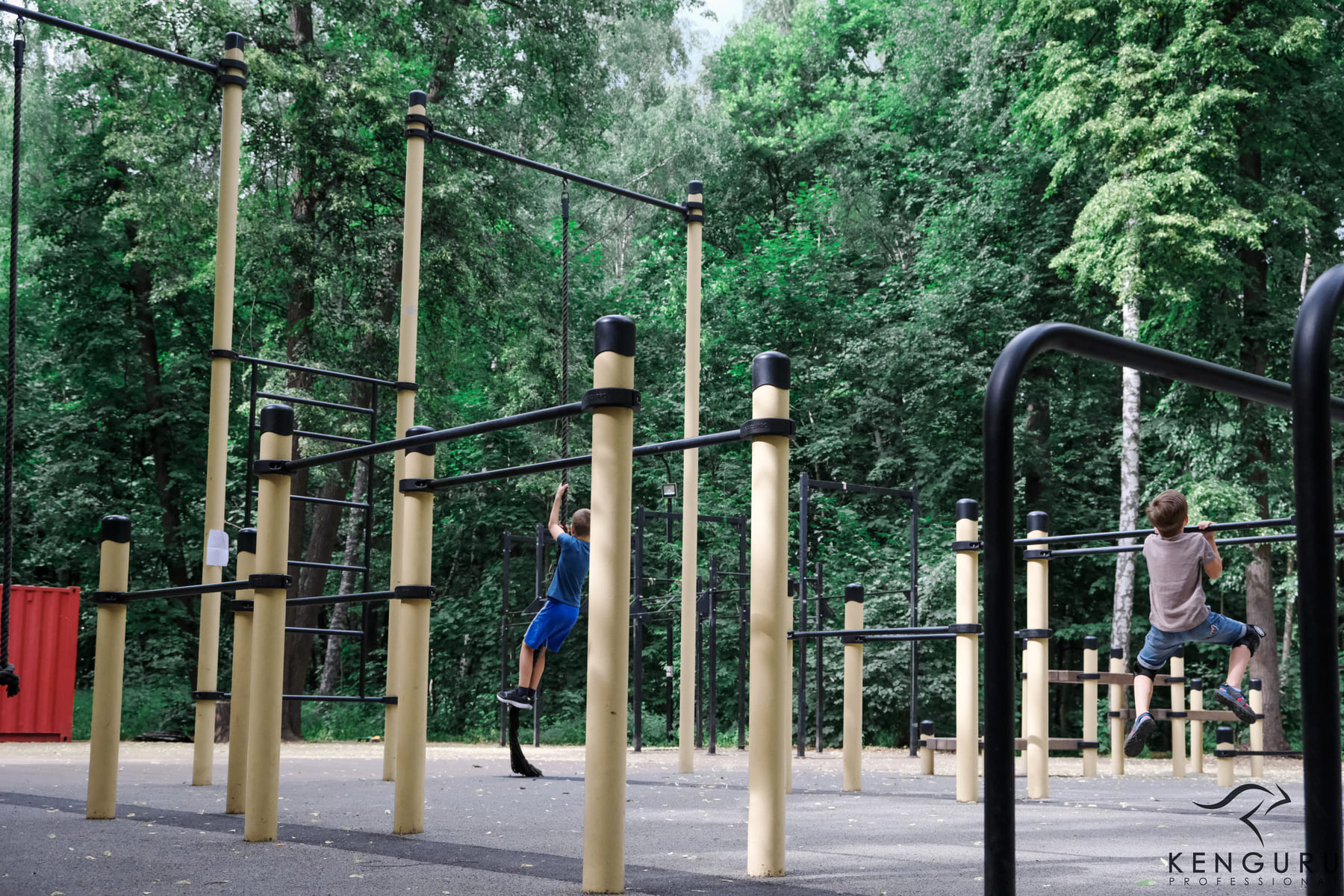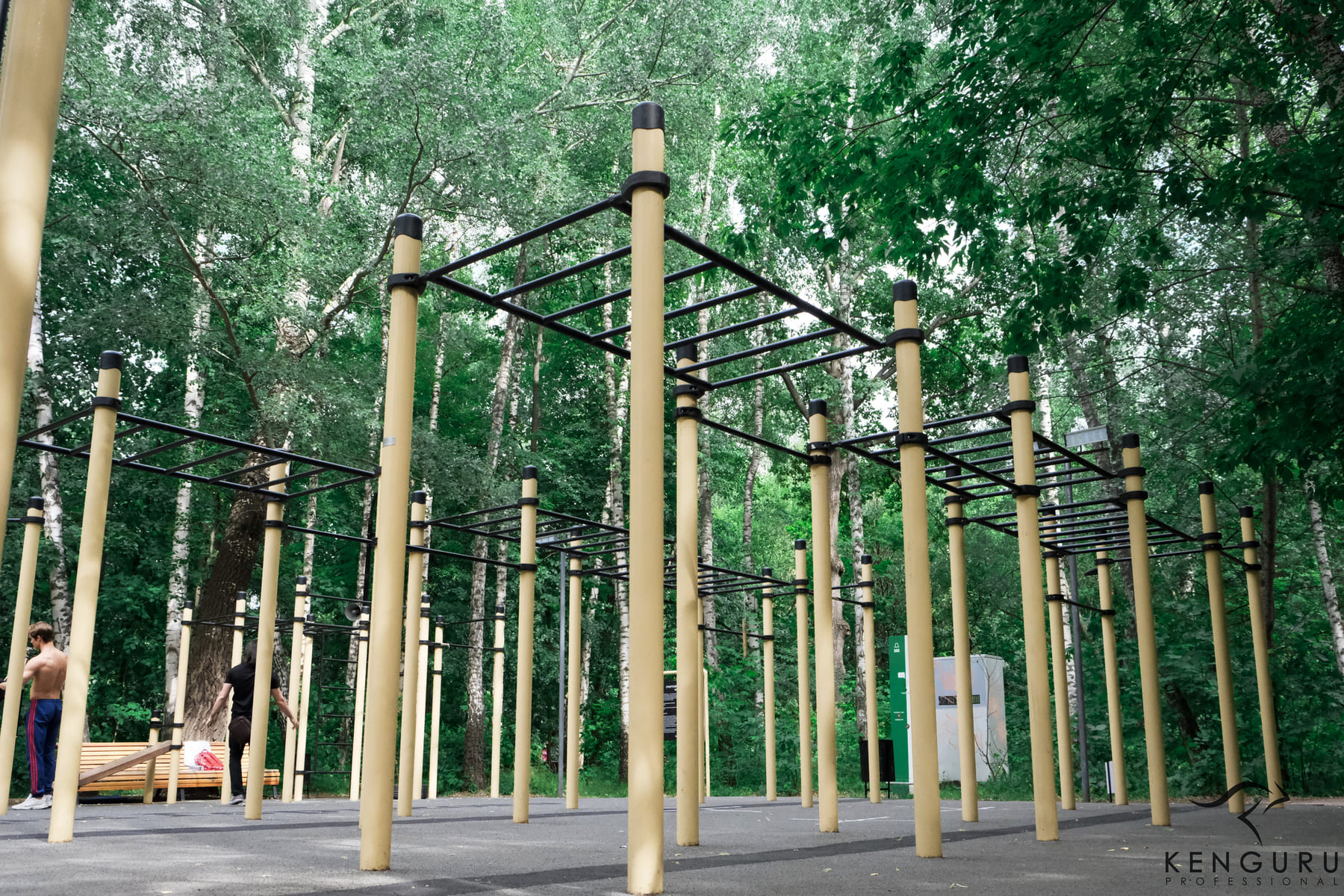 Воркаут площадка подходит для проведения соревнований. Есть комплексы для развития мышц груди, спины, рук, ног и пресса, а также для тренировки координации движений.