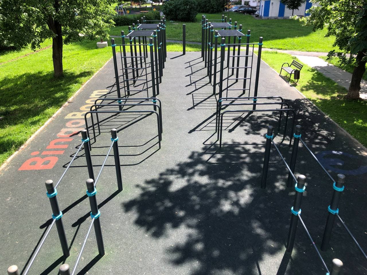 Полосу препятствий можно установить во дворе жилого комплекса, в парке, рядом со стадионом или на территории высшего учебного заведения.
