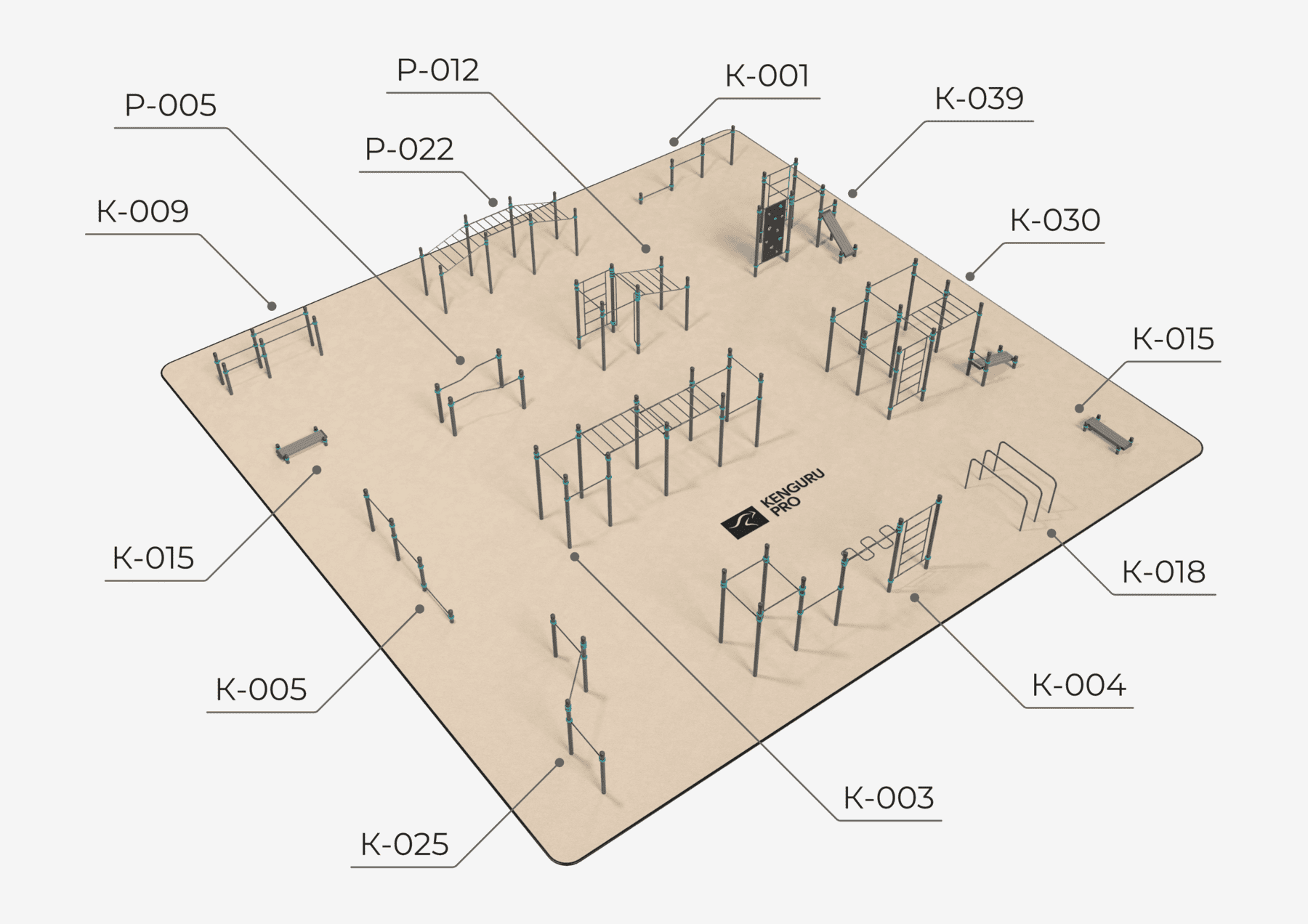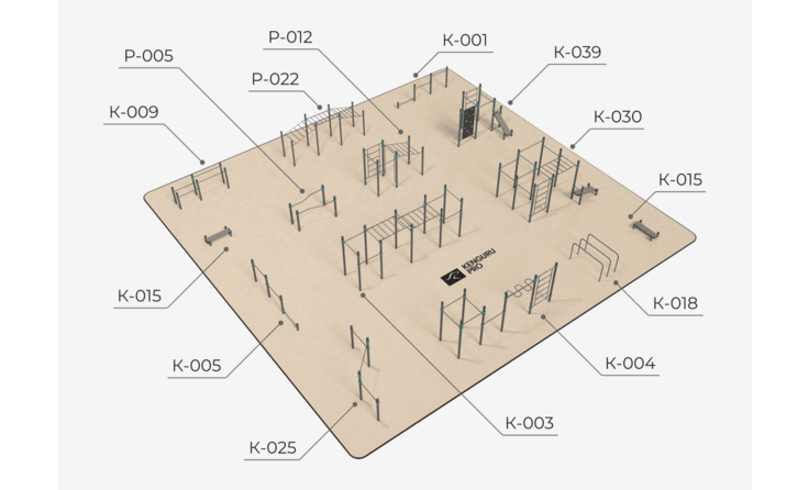 Воркаут площадка № 9 - 462 м2 (22 х 21 м)
